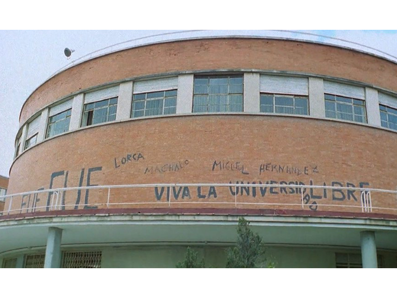 Esta frase formaba parte de una pintada realizada por aquellos estudiantes que intentaban reorganizar la Federación Universitaria Escolar (FUE), en las paredes de la Facultad de Filosofía y Letras, que por aquel entonces (1947) todavía se llamaba Universidad Central.