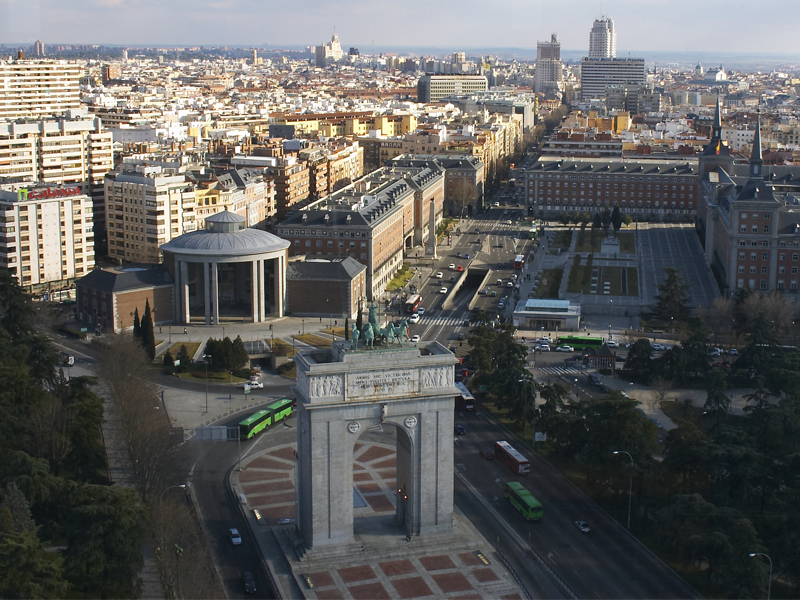 Con esta perspectiva, se puede considerar que el campus universitario de Moncloa es parte del nuevo eje urbano imperial que enlazaría el Palacio Real a un espacio conmemorativo de la victoria franquista centrado en el arco de triunfo instalado en Moncloa, junto al nuevo Ministerio del Aire. Un eje que recorría la Ciudad Universitaria para conectarla en su salida hacia la sierra con el Valle de los Caídos (1959), la obra faraónica con la que el dictador pretendía hacer su victoria eterna. Ambos espacios arquitectónicos son singulares en muchos sentidos. El conjunto arquitectónico llamado actualmente Valle de Cuelgamuros, en virtud de la nueva normativa, busca batir récords mundiales, con una cruz de 150 metros y una basílica de 256 metros, así como un enorme conjunto escultórico y las criptas, con más de 30.000 cadáveres exhumados, que hacen que este lugar sea uno de los máximos exponentes de necropolítica del mundo.